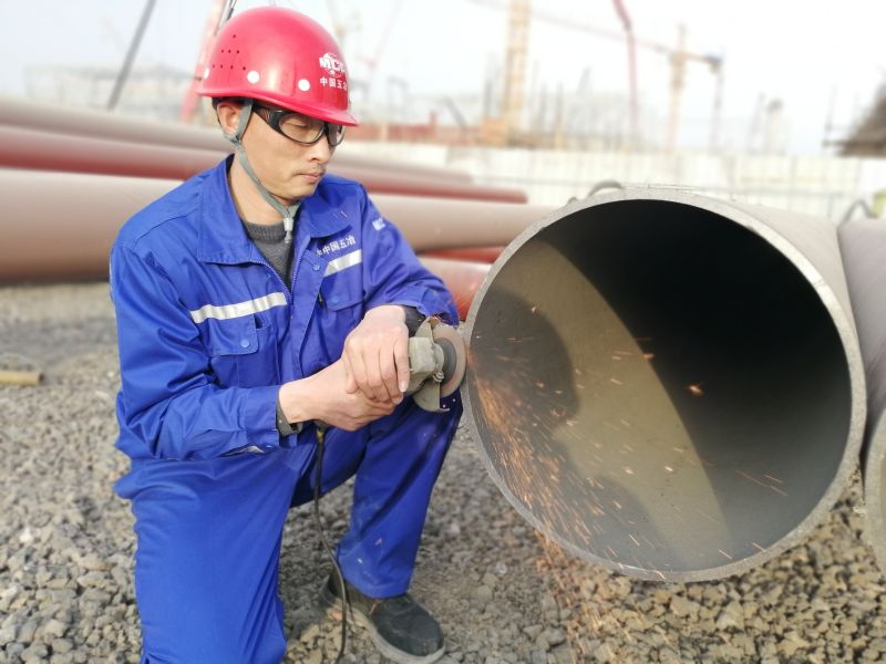 李文标在打磨管口