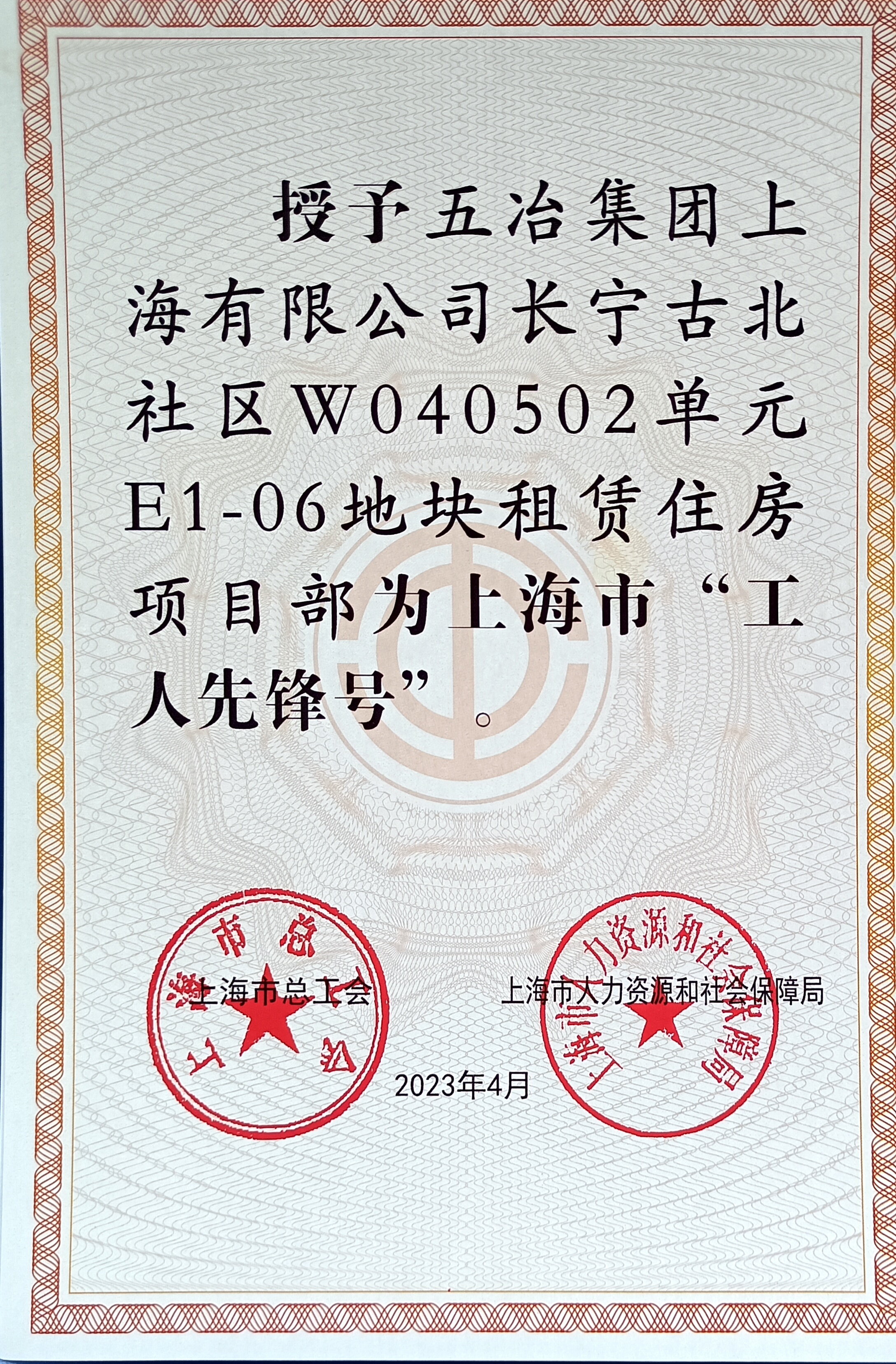 近日,在上海市总工会举办的2023年上海市五一劳动奖表彰大会上,威廉希尔williamhill中文长宁古北社区W040502单元E1-06地块租赁住房项目部以优越的成绩,荣获2023年上海市“工人先锋号”荣誉称号。