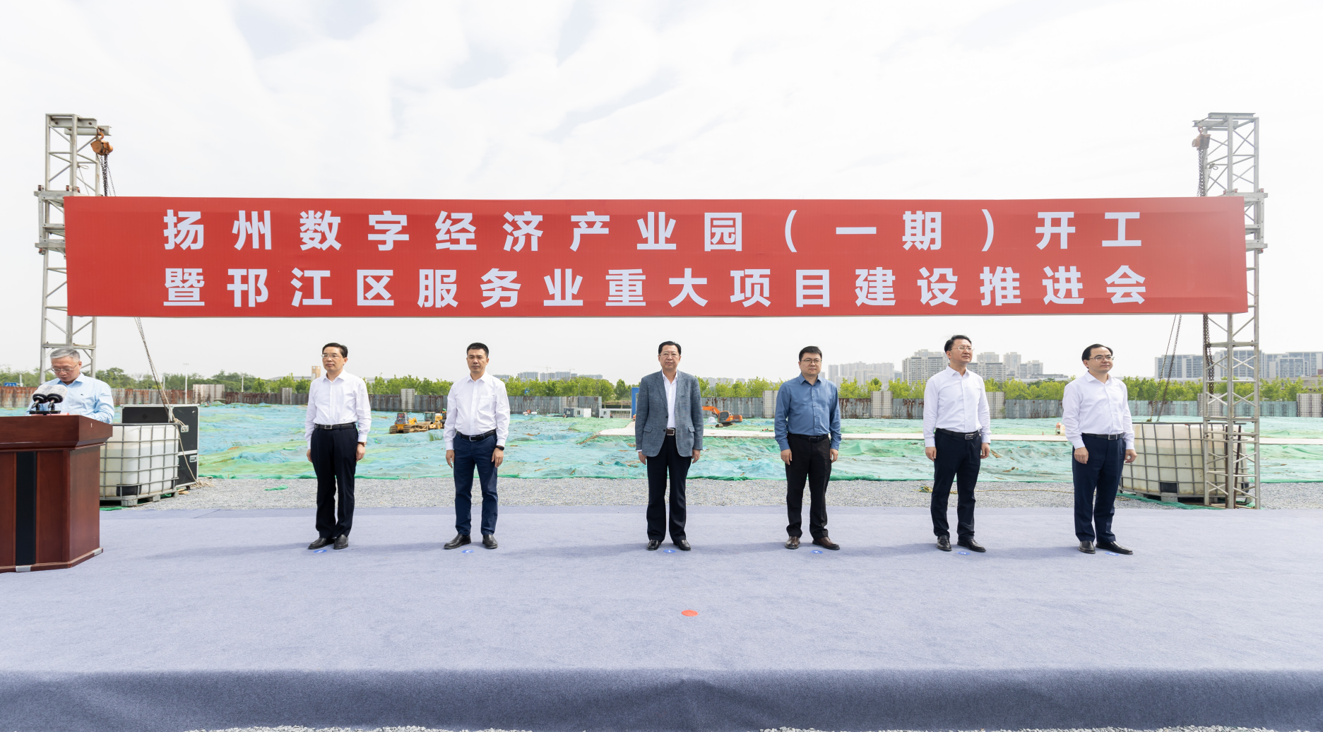 5月18日,威廉希尔williamhill中文承建的扬州数字经济产业园(一期)项目开工仪式在扬州市维扬经济开发区隆重举行,扬州市委常委、市政府常务副市长潘学元宣布项目开工,威廉希尔williamhill中文副总经理、五冶集团上海有限公司党委书记、总经理张家元与参加仪式的各方领导共同为项目奠基培土。